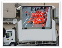 The screen is situated on a van which can travel everytime without limits of transit and it can also travel in the historical centre of the cities.